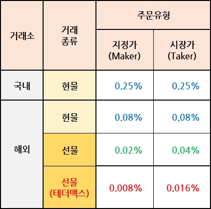 해외 거래소에서는 현물 거래조차 수수료가 저렴하고, 선물 거래는 더욱 저렴하여 매매 횟수가 많은 경우 수수료 부담을 크게 줄일 수 있습니다.